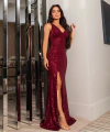 Vestido confeccionado com paete, alça grossa, decote em V. Estilo sereia, modela a cintura, trazendo charme e elegância. Possui bojo, forro e ziper invisivel nas costas. Saia com fenda e um otimo caimento.